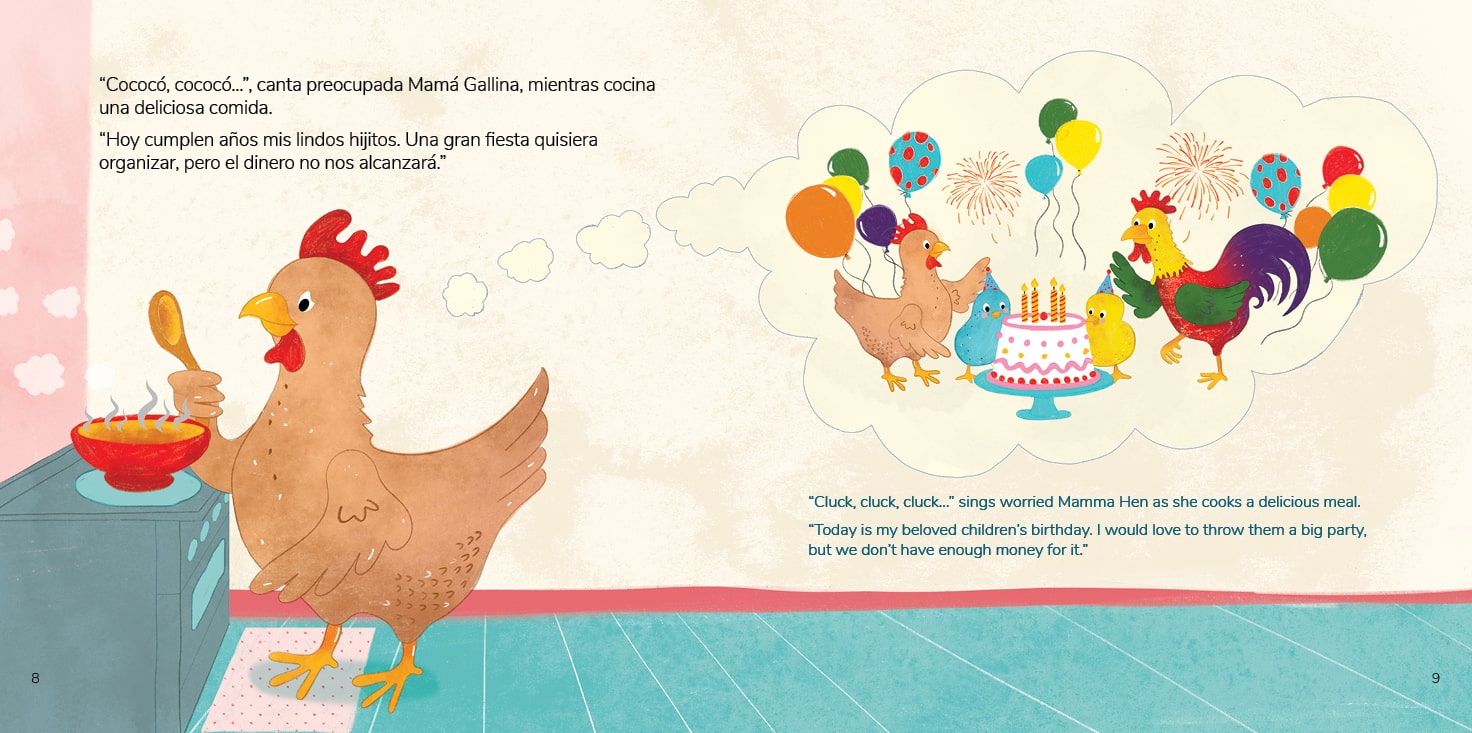 Two young chickens are celebrating their birthday under less-than-ideal circumstances. Together with their parents, they discover that the true essence of a celebration consists of having a community to share one’s joy with.